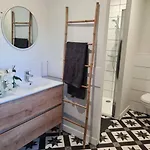 Eine Terrasse bietet zudem einen Ausblick auf den Pool. Die Unterkunft in Salles-la-Source verfügt über ein Badezimmer mit einer Dusche und einer Waschmaschine.